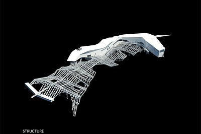 | Bicycles parked alongside dome as if preparing for X-games. Youth references abound. |